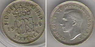 George V sixpence, 1933. Silver debased from 92.5% to 50% in 1920.