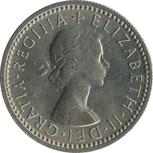 Elizabeth II sixpence, 1966. Demonetized 1980. Widely used as a wedding token.